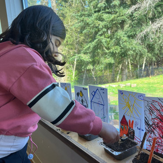 The children worked hard this week designing their own houses. They were able to draw them however they liked. Some children had dinosaur houses, bunnies in the yard, or high rises with many windows! After they finished drawing their homes we laminated them and created fences. We put some soil in the front yard and added grass seed with a spoon. Then they raked the seed and watered the lawn. We look forward to seeing if we can grow some grass for our houses!